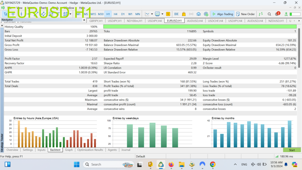 To increase trade accuracy, the EA uses multiple confirmation indicators, such as RSI and moving averages. These indicators provide an extra layer of validation, ensuring that each trade aligns with the overall market trend.